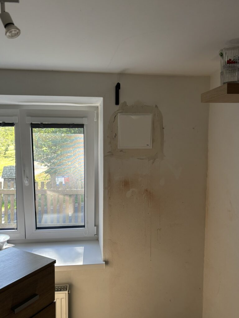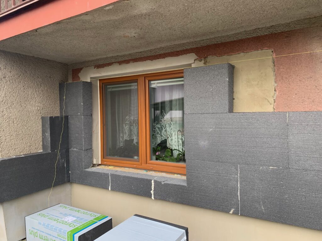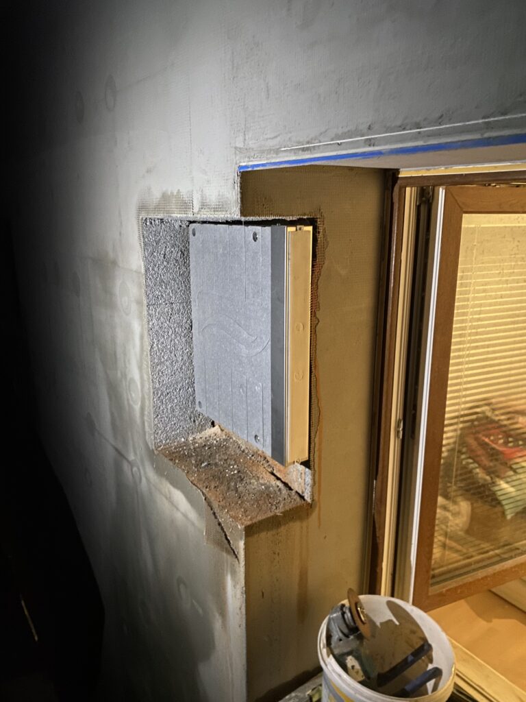 Rekuperace – Kočov Decentrální rekuperace INVENTER s podomítkovými bezdrátovými vnitřními kryty a venkovními skrytými výduchy CORNER do špalety okna (osazení před venkovní žaluzie).